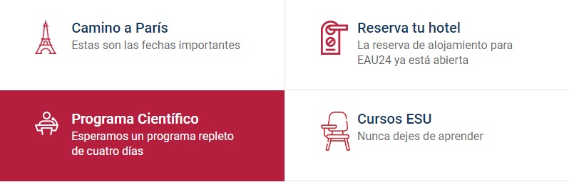 En 2024, la vibrante capital francesa será el telón de fondo del mayor evento urológico de Europa, el 39º Congreso Anual de la EAU (EAU24) . Año tras año, miles de profesionales de la salud asisten a los populares Congresos de la EAU, y la edición de 2024 no será diferente. Puede esperar un completo programa científico de cuatro días que incluye cirugía en vivo, conferencias de última generación, discusiones de casos y debates. Cada año, científicos emergentes envían miles de resúmenes y la EAU ofrece a cientos de ellos la oportunidad de presentar sus investigaciones.